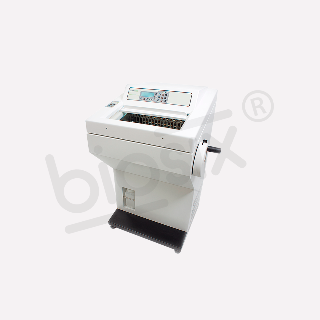 - Criostato de suelo compuesto por un microtomo giratorio para cortes de tejido congelado.